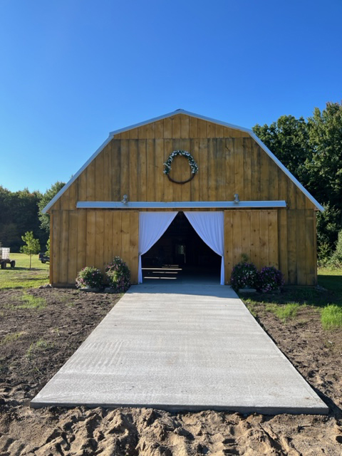 We are happy to now offer a wedding and event barn for those looking for something a little out of the ordinary for their wedding or event. Our barn has a capacity of 100 people. You can increase the number of guests by adding a tent if you wish. The grounds around the barn are very expansive. The barn will be a wonderful setting for your wedding or event and give you life-long memories. The barn is a “warm weather” venue so we anticipate our season will be from around the first of June until the first of October.