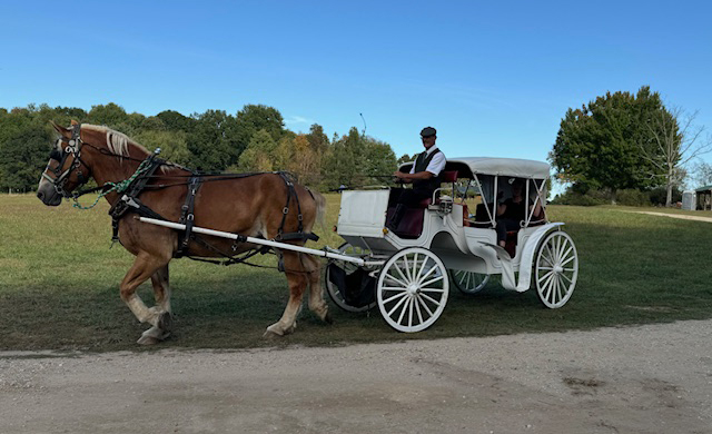 We have also constructed a wedding arch so that you can conduct your ceremony here on the farm just a short walk from the wedding barn surrounded by the beauty of nature if you'd like. Want to make a dramatic entrance? Add our horse drawn wedding carriage to your big day and make it even more memorable. We can keep the cost reasonable because we don't have to transport our horse and carriage off the farm.